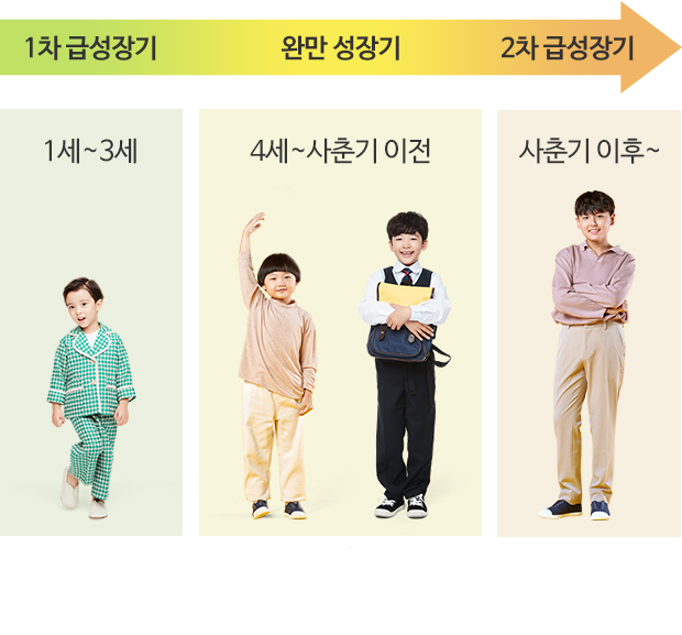 세 돌 이후부터 2차 성징이 나타나기 전까지는 성장 완만기입니다. 이 시기에는 매년 아이의 성장력을 최대치로 키우는 것이 중요합니다.