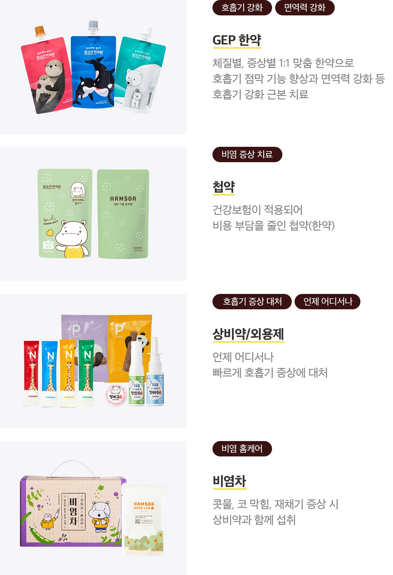 함소아 대표 한약 처방에 대한 세부 소개입니다.