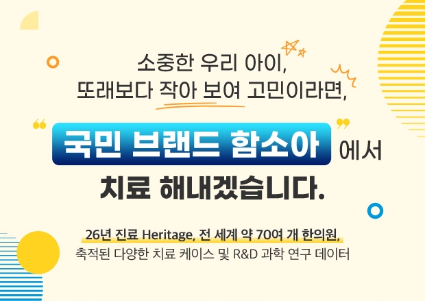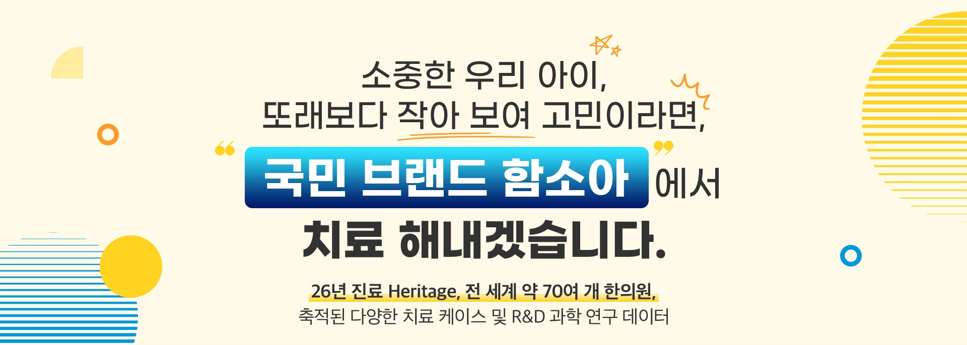 소중한 우리 아이, 또래보다 작아 보여 고민이라면, 그 해답은 바로 함소아 성장 치료에 있습니다.