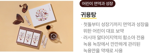 함소아 러시아 알타이산맥 녹용은 천혜의 자연환경 속에서 방목된 사슴으로부터 유래해, 강인한 생명력과 최상급의 약효를 지니고 있습니다. 특허를 바탕으로 한 제조 공정과 엄격한 품질 관리, 그리고 안전성 검증을 거쳐 만들어지는 귀한 약재입니다.